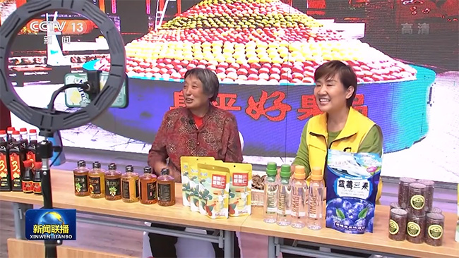 在阜平縣駱駝灣村,一場農(nóng)副產(chǎn)品的直播帶貨正在進行。