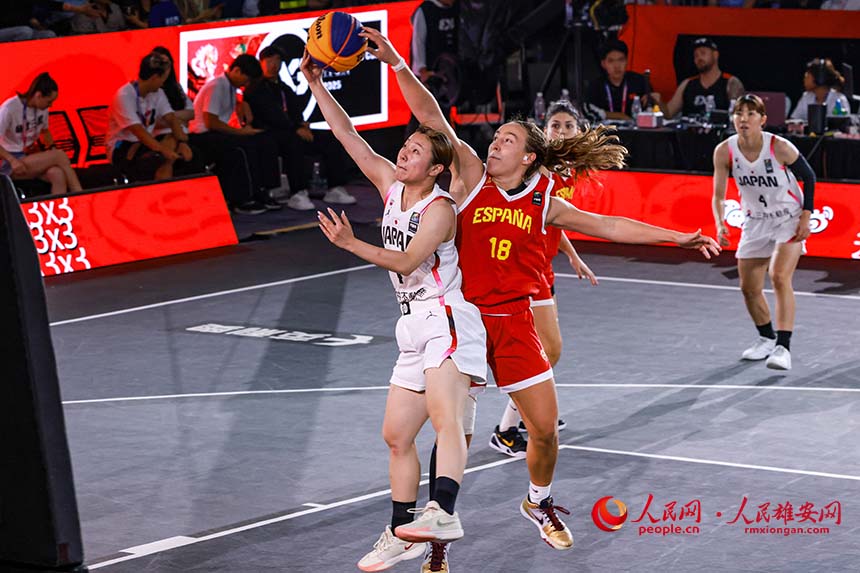 日本女隊同西班牙隊比賽現(xiàn)場。人民網(wǎng) 席彪攝