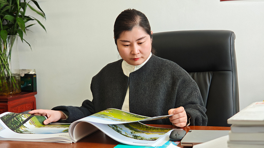 武芳芳翻看園林畫冊。雄安集團(tuán)生態(tài)建設(shè)公司供圖