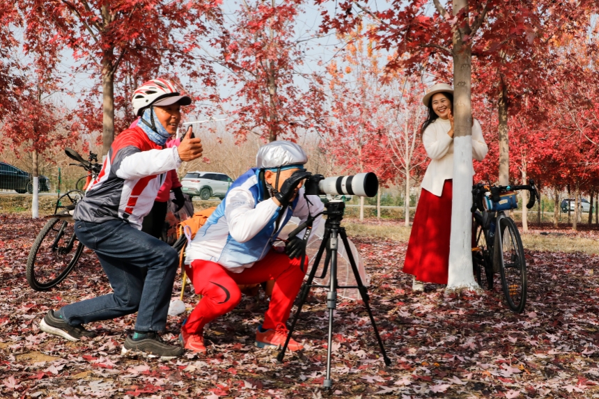 分外紅艷的楓葉引得雄安市民駐足、拍照留影。胡忠攝